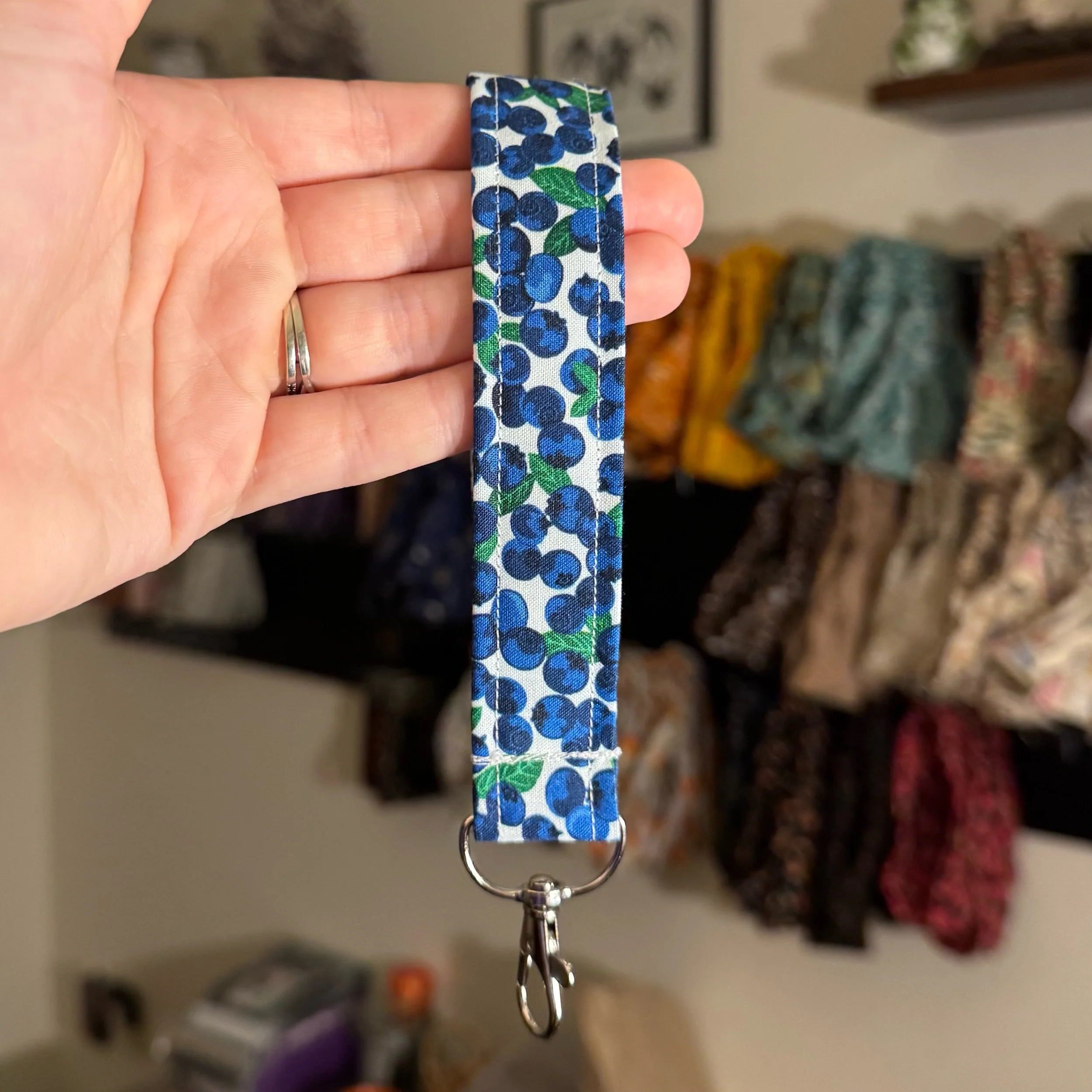 Shop › Blueberry Keychain Image 1 of 2 Image 2 of 2 Blueberry Keychain $6.00 Handmade blueberry fabric Keychain wristlet. Approx 1”x5”, pattern may vary Quantity: Add To Cart Added! Handmade blueberry fabric Keychain wristlet. Approx 1”x5”, pattern may vary