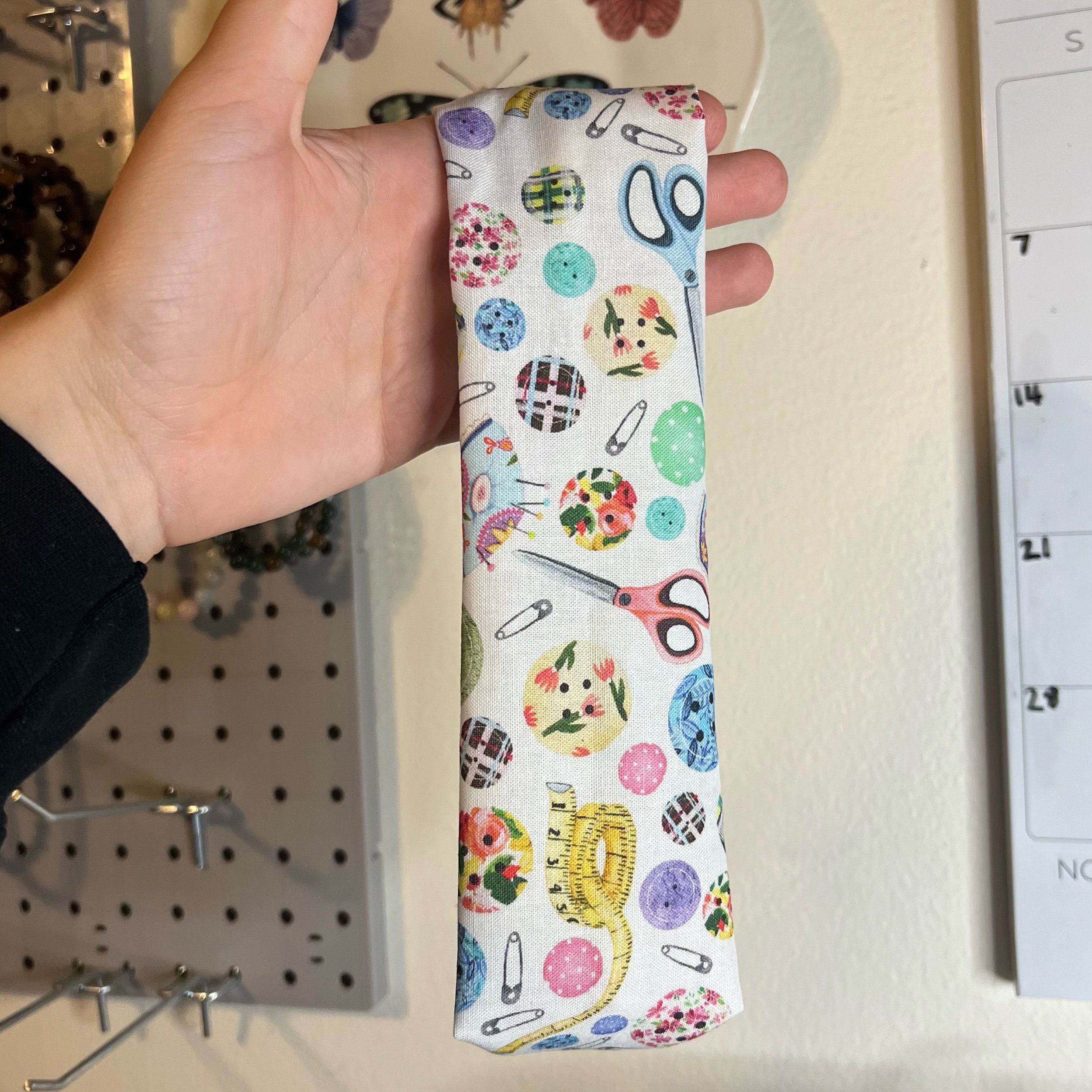 Shop › Tossed Sewing Notions Fabric Headband Image 1 of 3 Image 2 of 3 Image 3 of 3 Tossed Sewing Notions Fabric Headband $8.00 Handmade tossed sewing notions fabric headband. One size fits most, pattern may vary. Approx 3” wide Add To Cart Added! Handmade tossed sewing notions fabric headband. One size fits most, pattern may vary. Approx 3” wide